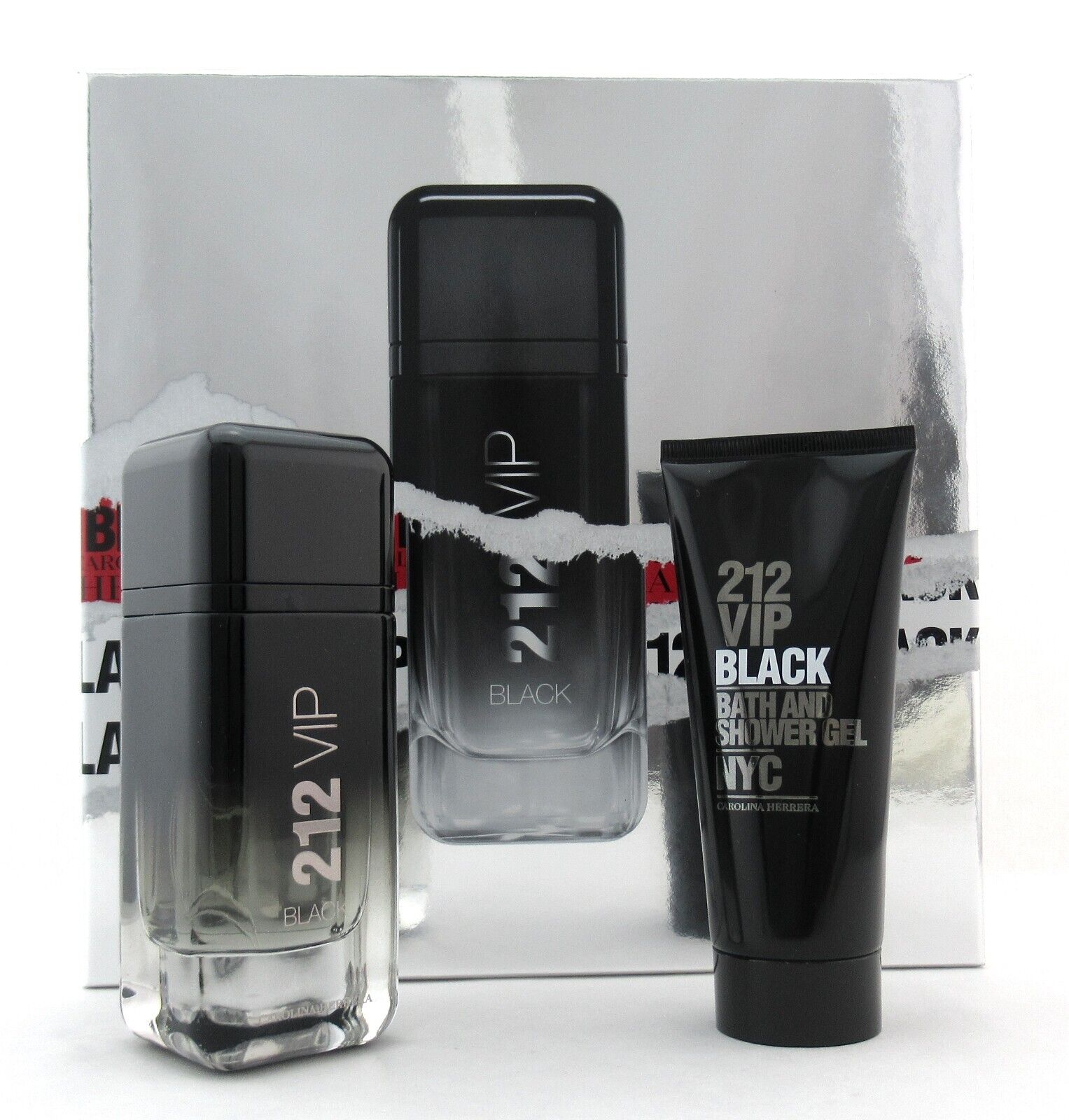 212 VIP BLACK by Carolina Herrera Set for Men Eau De Parfum Spray 100 ml./ 3.4 oz.+ Bath and Shower Gel 100 ml./ 3.4 oz. New Brand new. Comes in hard box as shown on the picture. (Our sku:13589)