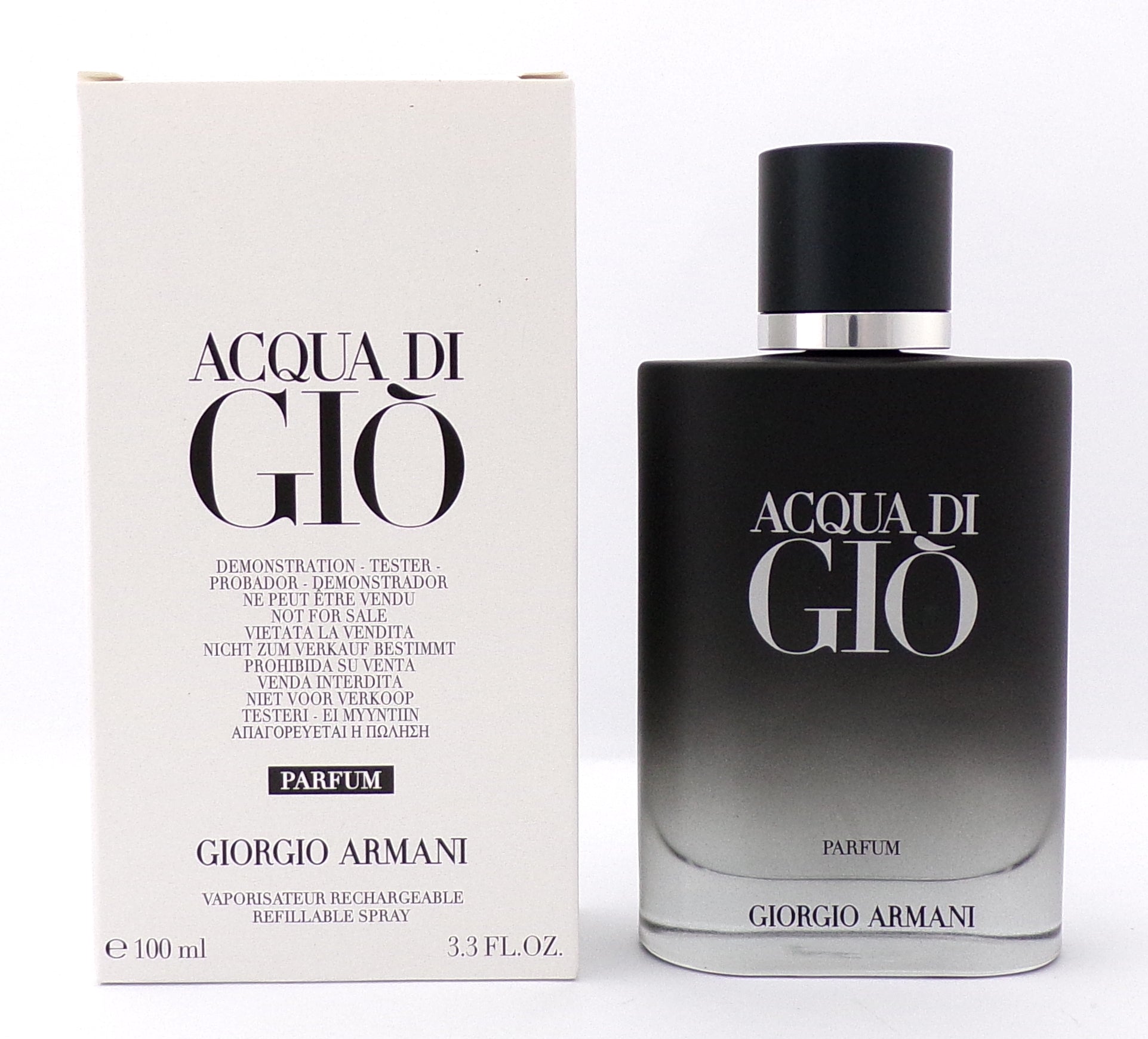 Acqua Di Gio by Giorgio Armani 3.3 oz./100 ml. PARFUM Refillable Spray for Men. Brand New Tester with Cap, never used. Comes in white shipping box. May say ''Tester/ Not for sale''. Batch number may vary.