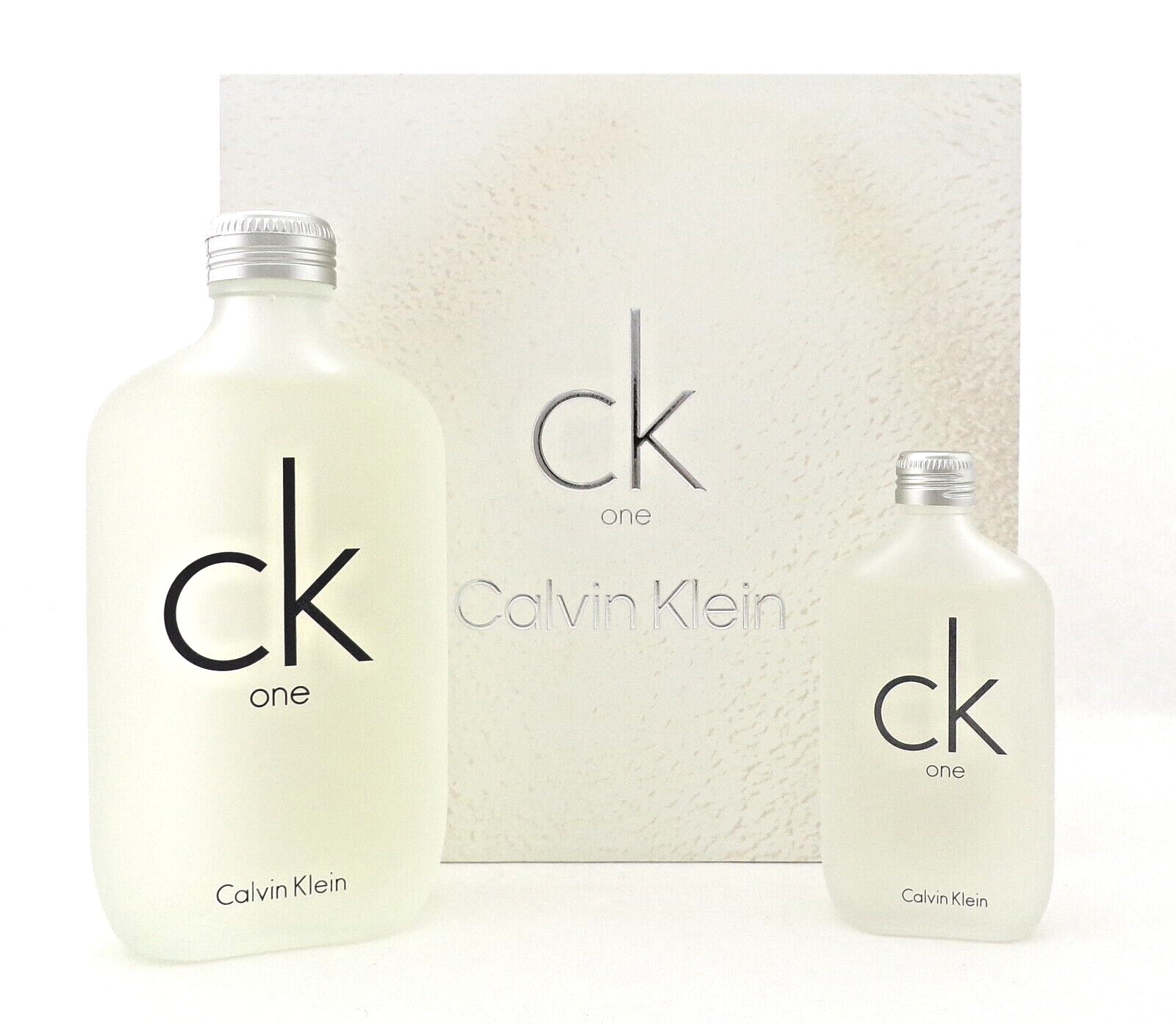 CK One by Calvin Klein 2 Pieces Gift Set Unisex: 6.7 oz./ 200 ml. Eau de Toilette Spray or Splash + 1.6 oz./ 50 ml. Eau de Toilette Spray or Splash. Brand new Set. Comes in origial retail hard box. (our sku:24984)