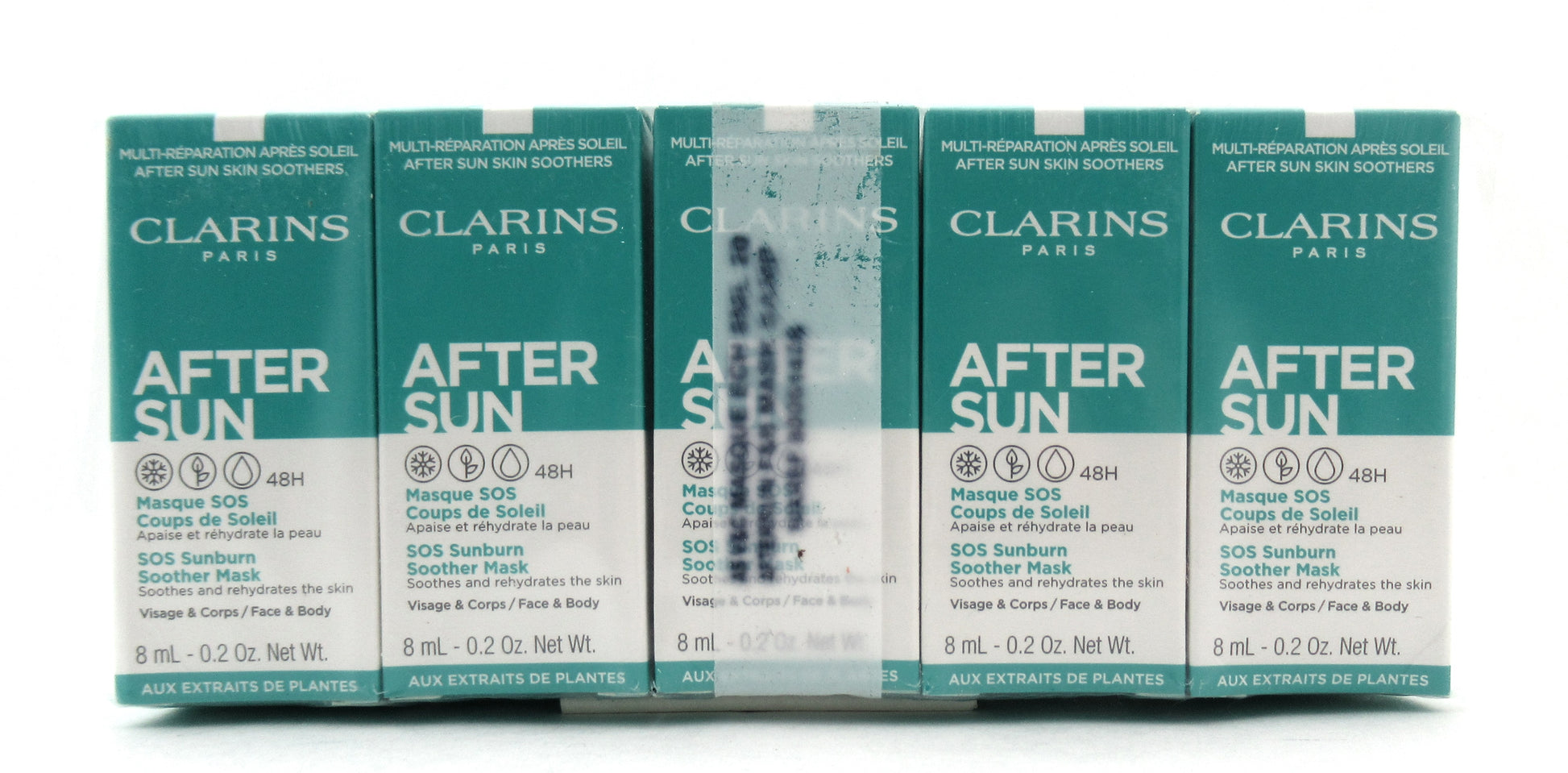 Clarins After Sun SOS Sunburn Soother Mask Face & Body 8 ml./ 0.2 oz. Sample Lot of 10 Brand new. Comes in lot of 10 as shown on the picture. Might be marked "sample/not for sale. Batch number may vary.