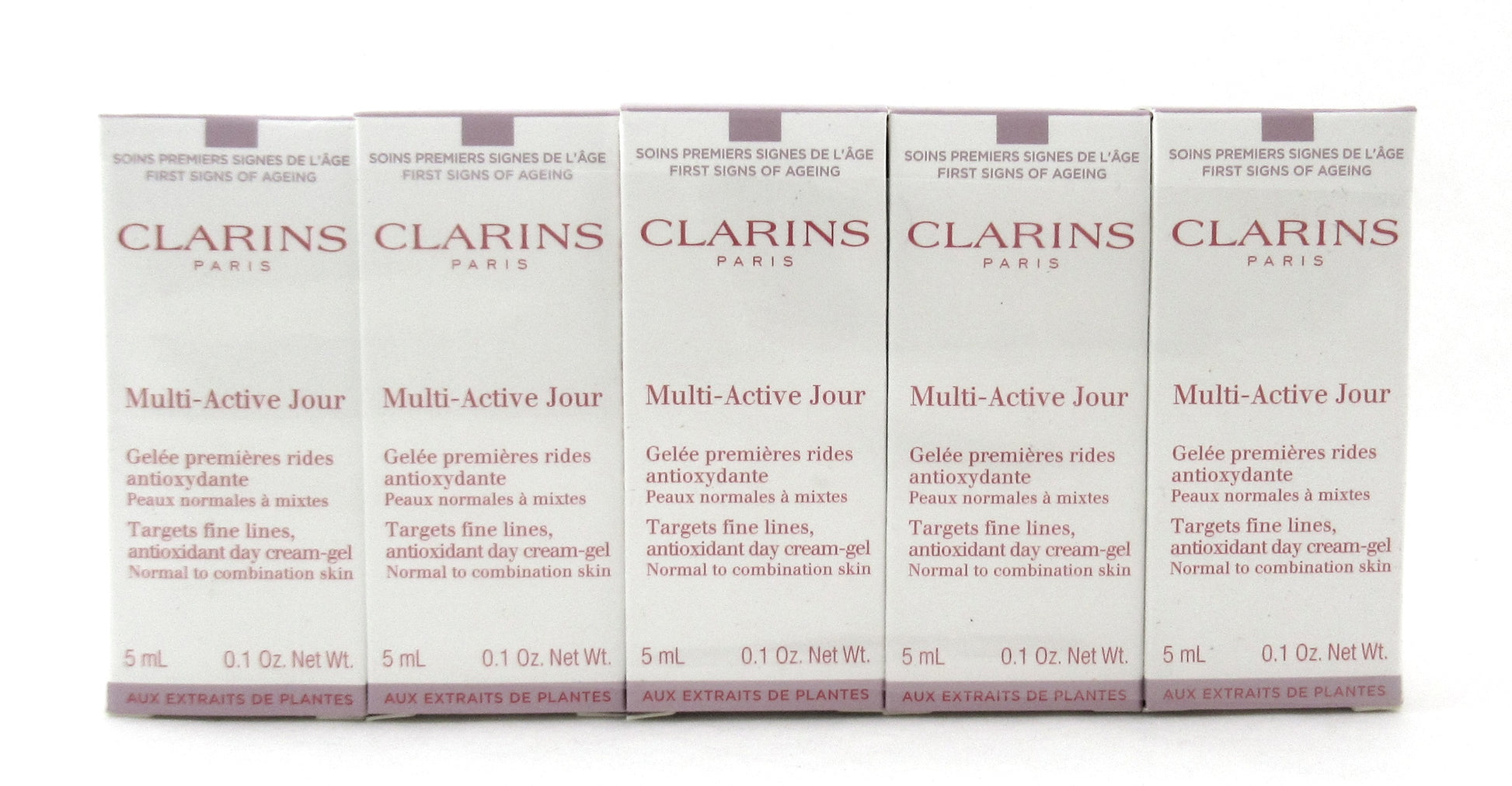 Clarins Multi-Active Jour Antioxidant Day Cream Gel Normal to Combination Skin 5 ml./ 0.1 oz. Sample Size Lot of 10 New Brand new. Comes in lot of 10. Might be marked "sample/not for sale." Batch number may vary.