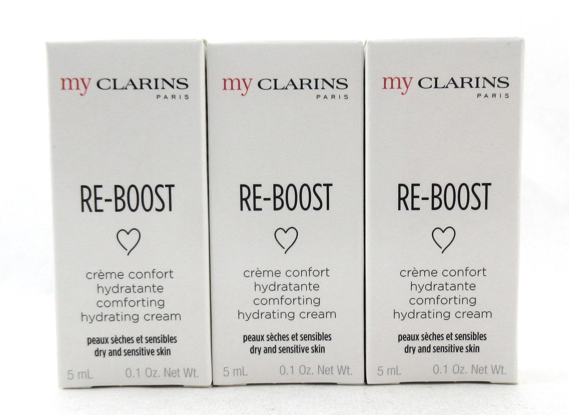 Clarins My Clarins Re Boost Comforting Hydrating Cream Dry and Sensitive Skin Sample Size 5 ml./ 0.1 oz. Lot of 6 New Brand new. Comes in lot of 6. Might be marked "sample/not for sale.