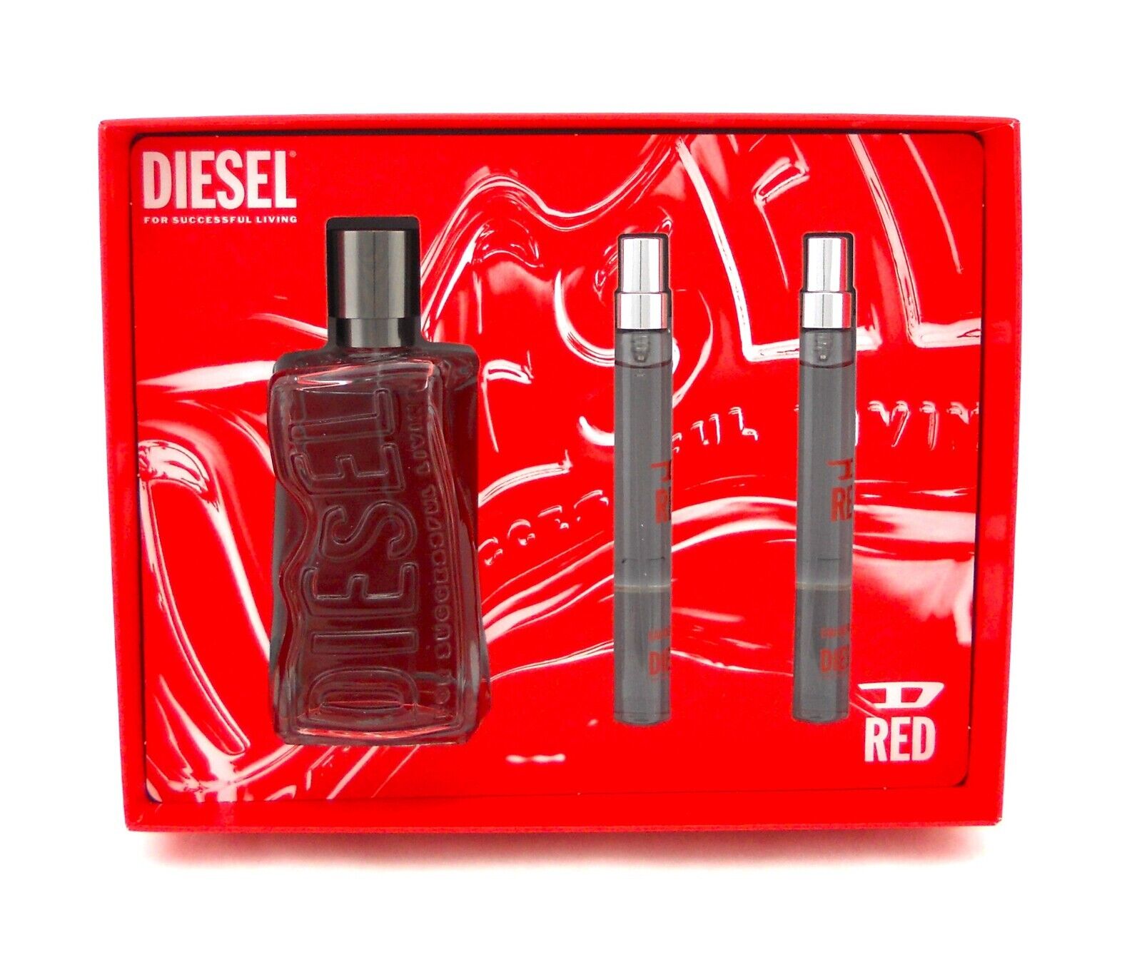 Diesel D RED 3.4 oz./100 ml. Eau De Parfum Spray + 2 x 0.3 oz./10 ml. Travel Sprays. Brand new set for Men. Comes in hard box as shows. (our sku:15794)