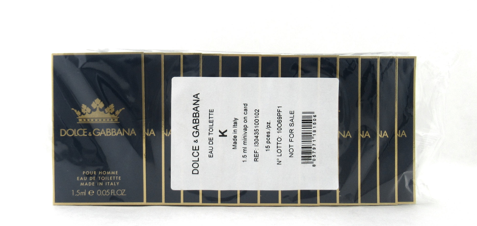Dolce & Gabbana K Pour Homme Eau De Toilette Spray Vial 1.5 ml./ 0.05 oz. Lot of 15 New Sealed Pack Brand new. Comes in sealed pack as shown on the picture. May be marked "sample/not for sale."