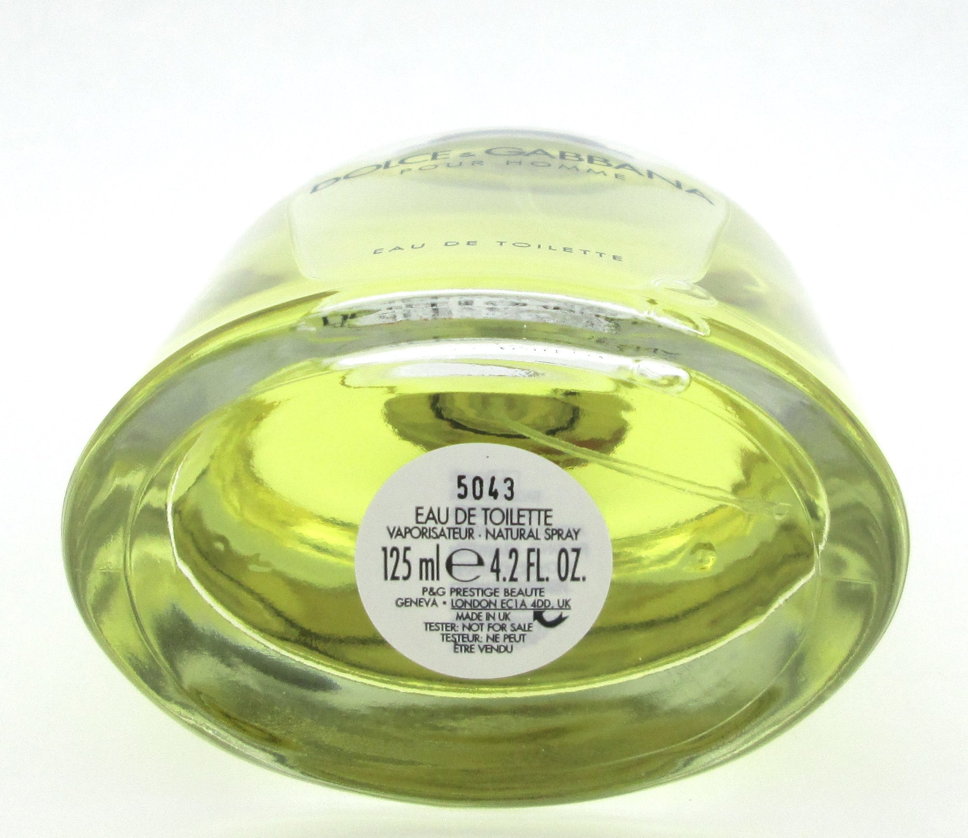Dolce & Gabbana Pour Homme Eau De Toilette Spray 125 ml./ 4.2 oz. Tester LOWFILL Bottle NO BOX Comes without the box and fragrance level is as shown on the picture. May b e marked "tester/demonstration/not for sale."