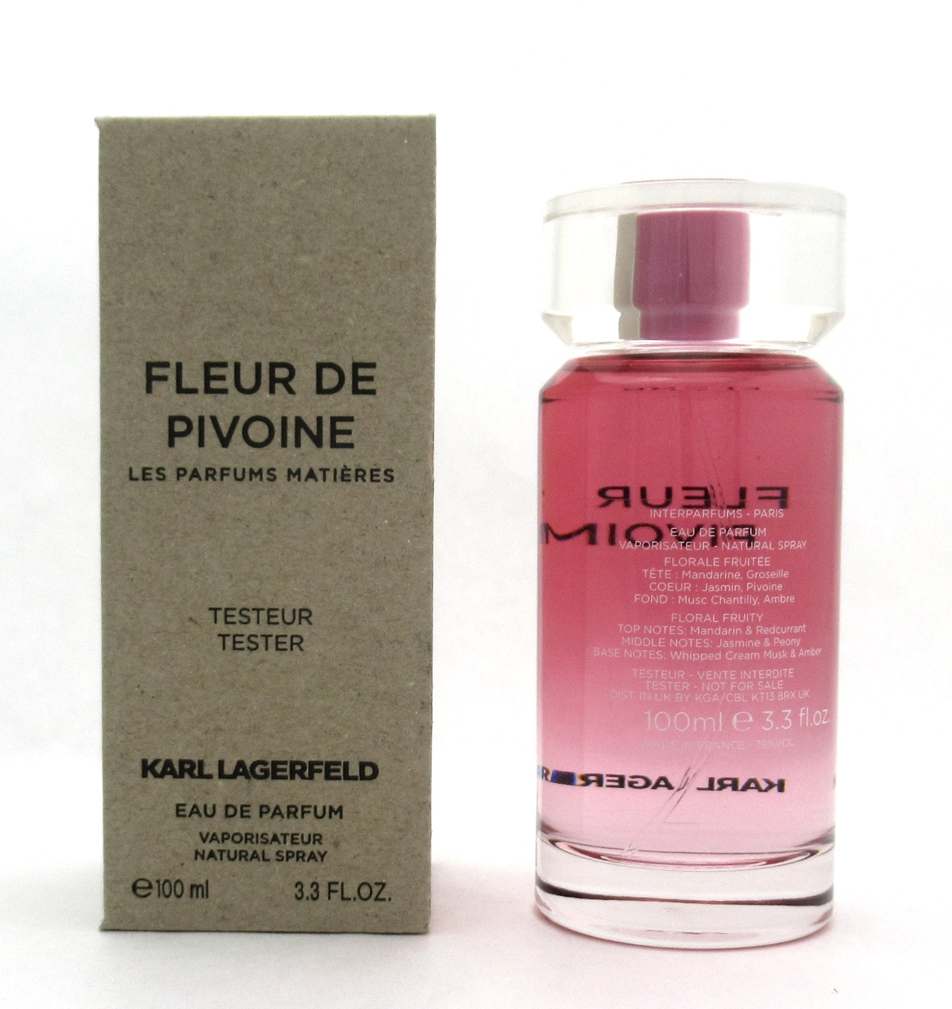 Fleur De Pivoine by Karl Lagerfeld Eau de Parfum Spray for Women 100 ml./ 3.3 oz. New Tester w/Cap Brand new. Comes in non decorative tester box. May be marked "tester/demonstration/not for sale." Batch number may vary.