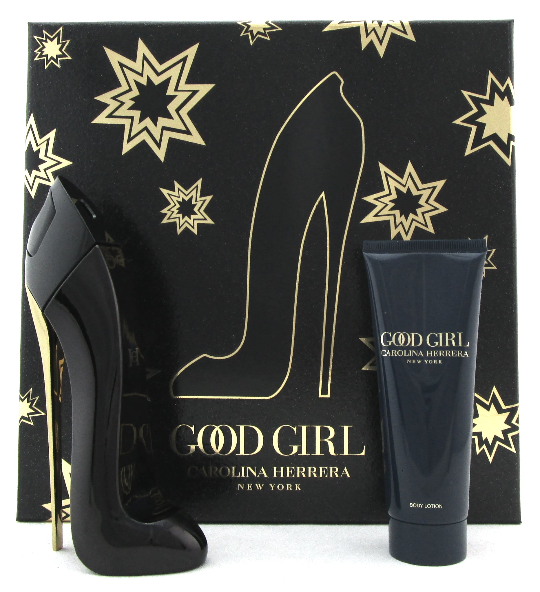 Good Girl by Carolina Herrera 2 Pieces Set for Women: 1.7 oz./ 80 ml. Eau de Parfum Spray + 2.5 oz./ 75 ml. Body Lotion. Brand new set. Comes in hard box as shown on the pictures.