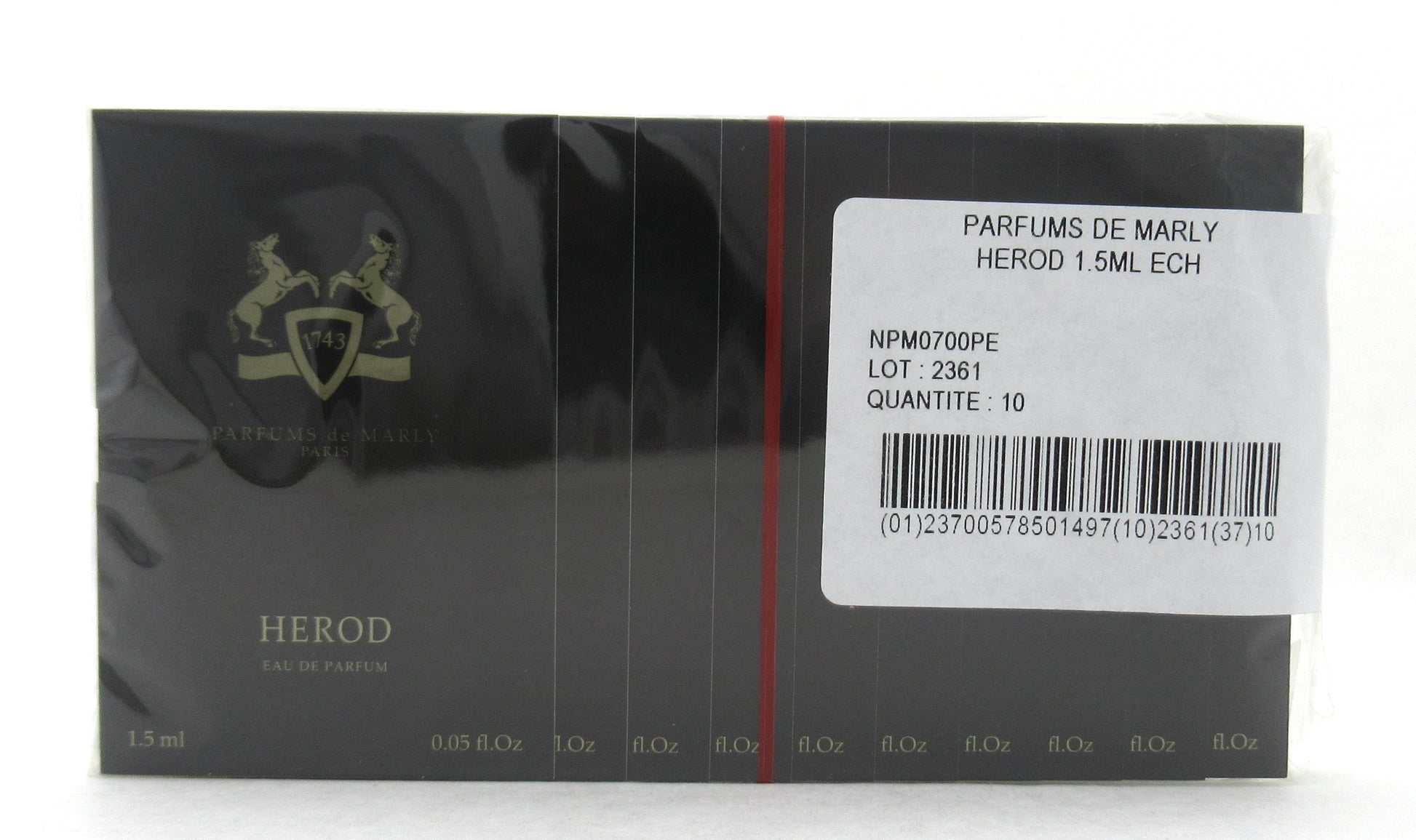 Herod by Parfums De Marly 1.5 ml./0.05 oz EDP Vial Spray for Men. Pack of 10 pcs. Sealed May be marked "sample/not for sale."
