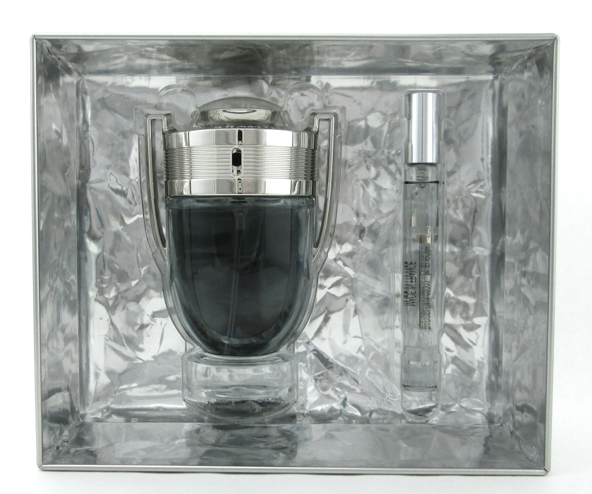 Invictus by Paco Rabanne Gift Set for Men Eau De Toilette Spray 100 ml./ 3.4 oz. + Eau De Toilette Spray 10 ml./ 0.34 oz. Brand new, never used. Comes in retail box as shown on the picture.