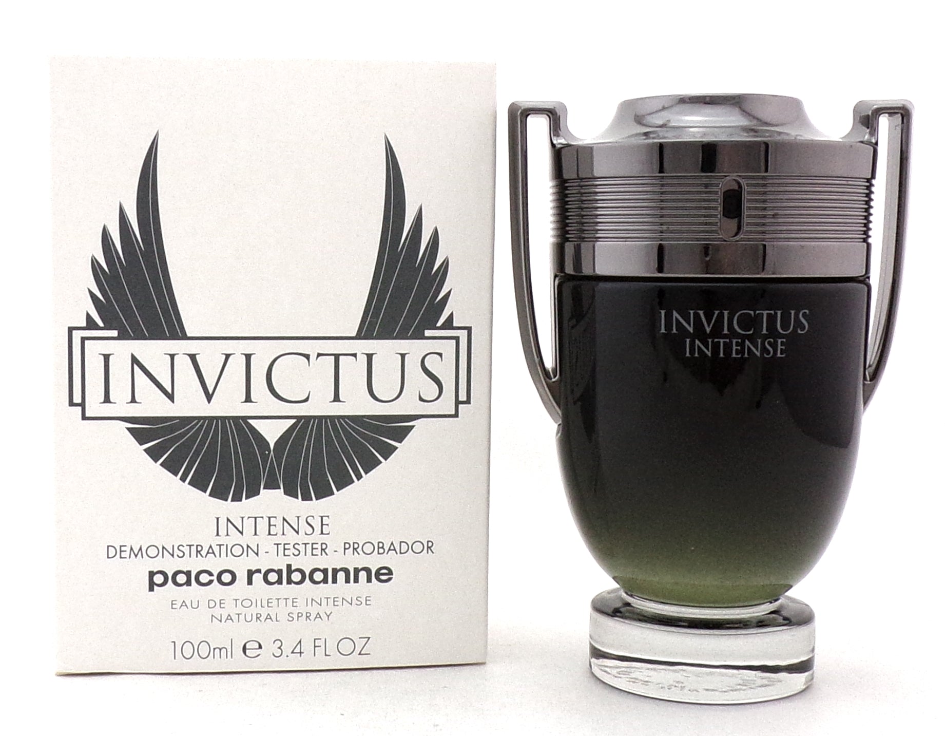 Invictus Intense by Paco Rabanne 100 ml./ 3.4 oz. Eau de Toilette Spray for Men. Brand new Tester, never used. Comes in non decorative white box. May be marked "tester/ demonstration/ not for sale."