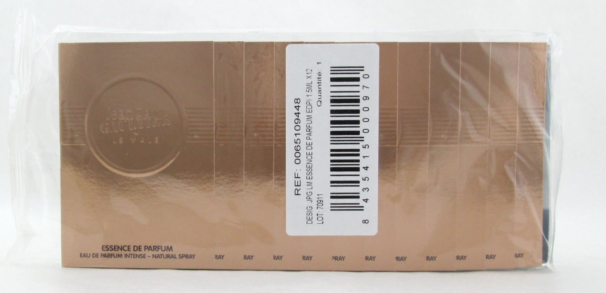 Jean Paul Gaultier Le Male Essence De Parfum EDP Intense Spray Vial Sample 1.5 ml./ 0.05 oz. Lot of 12 Brand new, never used. Comes in spray vial and the fragrance level is as shown on the picture. May be marked "sample not for sale." All 12 vials are sealed in plastic.
