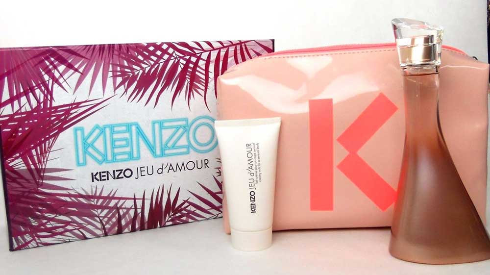 Kenzo Jeu d'Amour Eau de Parfum Spray 3.4 oz./100 ml.+ Creamy Milk 1.7 oz./ 50 ml.+ Beauty Pouch. Brand new Gift Set.Comes in hard box as shown on the pictures.