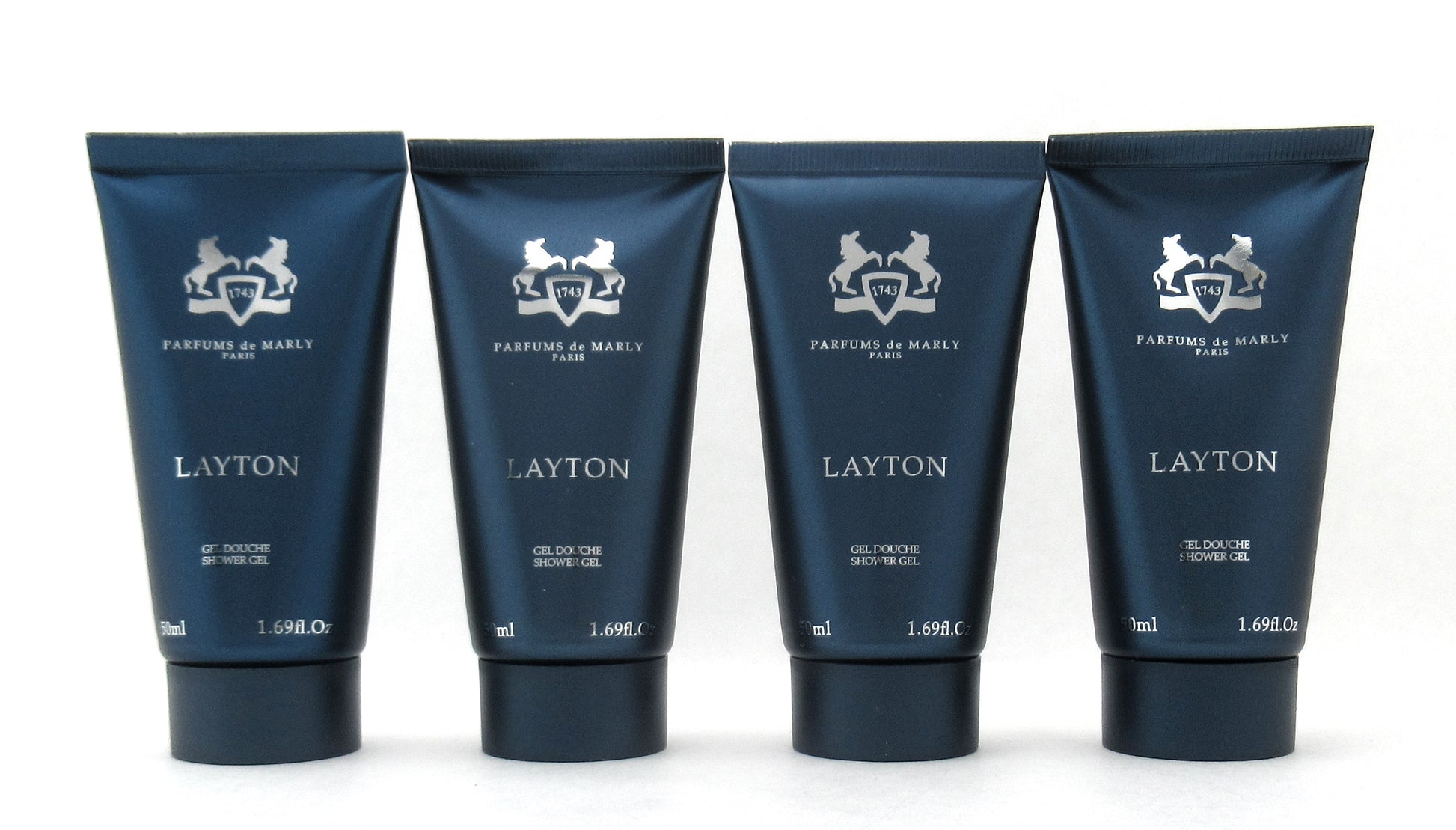 Layton Parfums de Marly Shower Gel Tubes 4 x 50 ml./ 1.69 oz. (Lot of 4) New Tubes are Sealed Brand new. Comes as shown on the picture in travel size tubes that are sealed. May be marked "sample, not for sale."