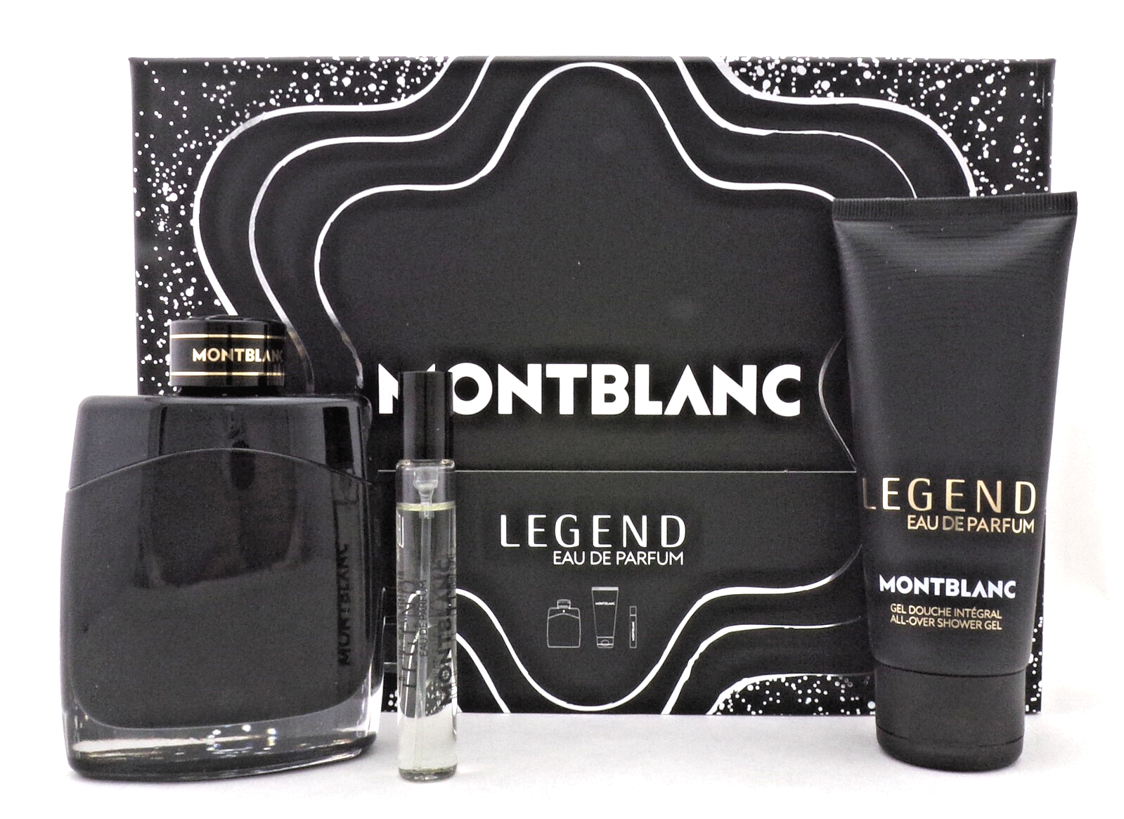 Legend Pour Homme by Mont Blanc 3 Pieces Gift Set for Men: 3.3 oz./ 100 ml. Eau de Parfum Spray + 0.25 oz./ 7.5 ml Eau de Parfum Travel Spray + 3.3 oz./ 100 ml. All-Over Shower Gel. Brand new SET. Comes in retail hard box as shown on the pictures. Batch number may vary. (our sku:23261)