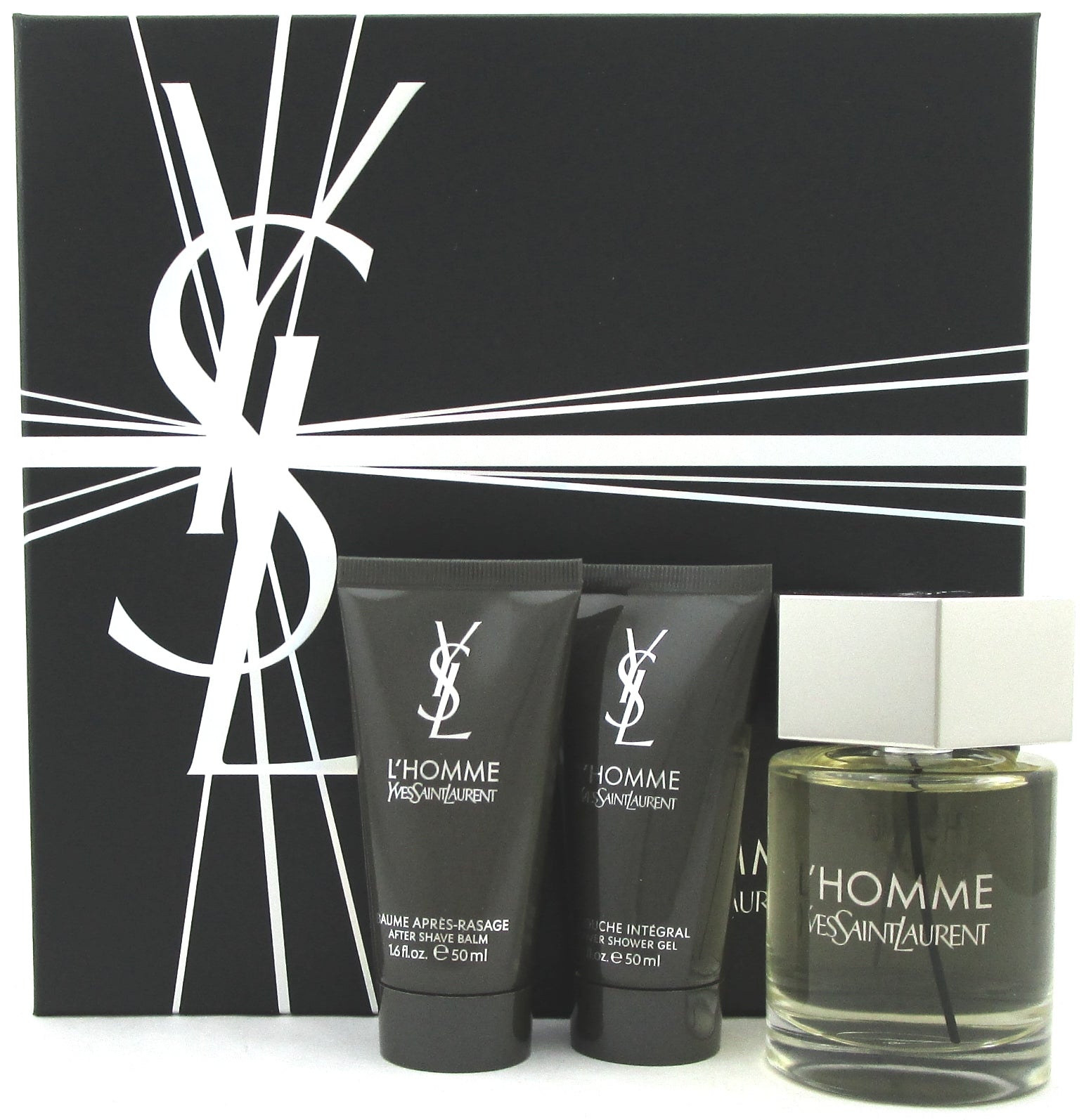 L'Homme by Yves Saint Laurent Set Men: 3.3oz EDT+1.6oz Sh/G+1.6oz A/Sh Balm. NEW