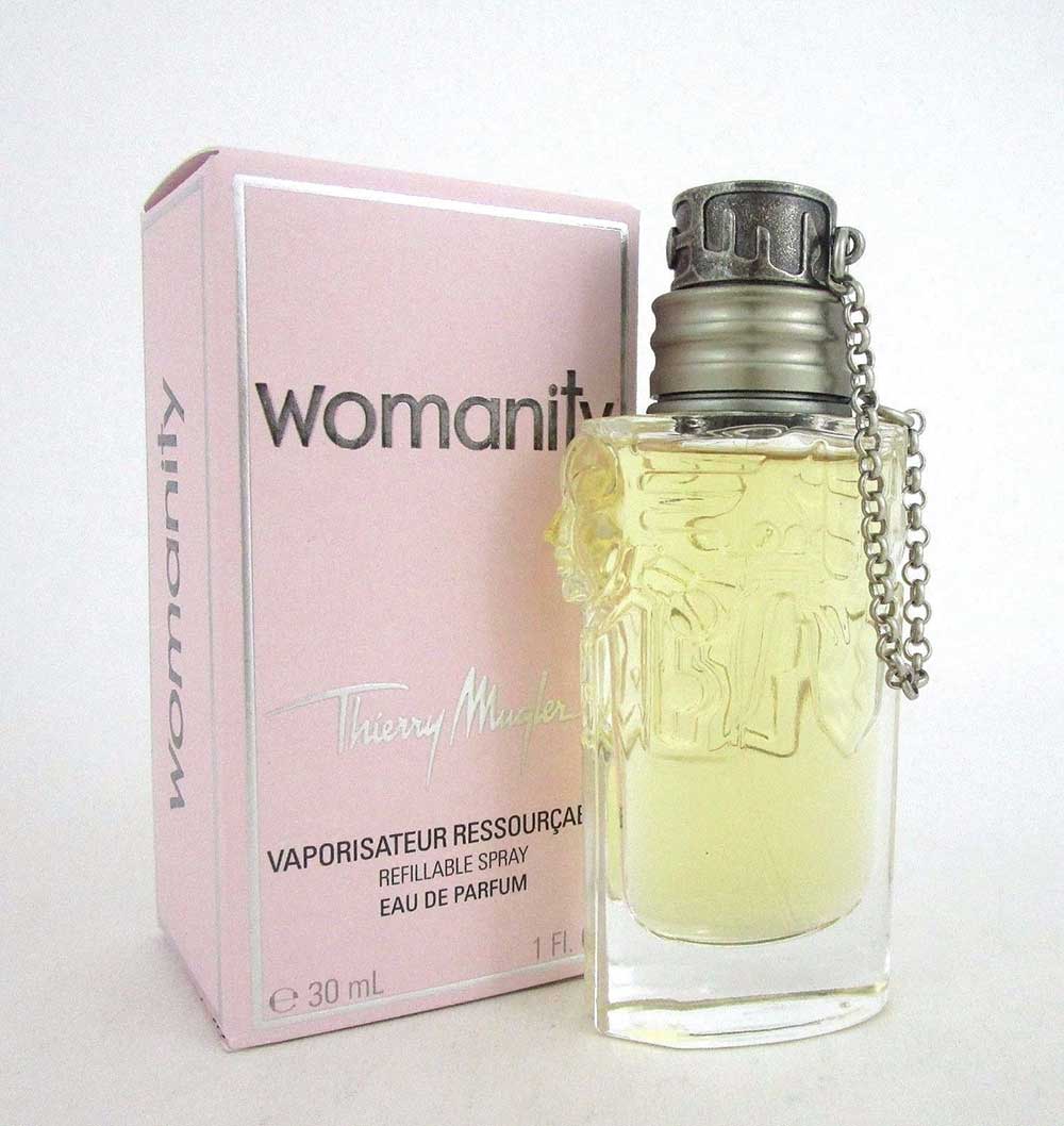 Womanity by Thierry Mugler Eau de Parfum Spray Refillable 1.0 oz./ 30 ml. Slightly Damaged Box. Brand new. Comes in retail sealed box.