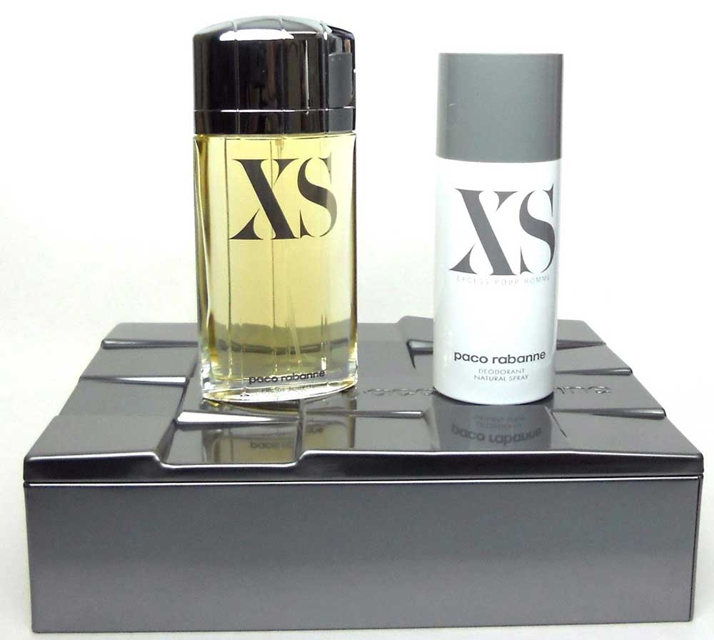 XS Pour Homme by Paco Rabanne 3.4 oz./ 100 ml. Eau de Toilette Spray + 5.1 oz./ 150 ml. Deodorant Spray. Brand new set. Comes in TIN box as shown on the pictures.